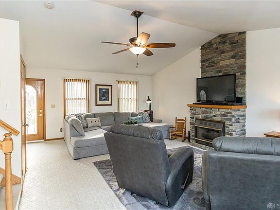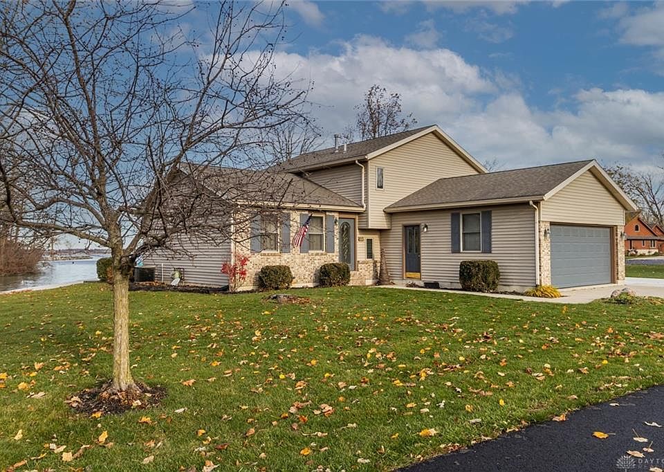 Lakefront living is waiting for you at this meticulously kept 3 bed/2 full bath newer built home, located on the largest lot in The Landings Subdivision w/ stunning panoramic views of Grand Lake Saint Marys! Welcoming & bright, the great room is cozy w/ cathedral ceilings, a floor-to-ceiling stone gas fireplace, & giant windows providing a picturesque lake landscape! Open concept kitchen/dining area w/ eat-at bar & granite countertops. Convenient full bath & laundry on the 1st floor. Find 3 spacious bedrooms & full bath on the 2nd floor w/ the master bedroom offering 2 spacious closets & private entrance to bath. Enjoy vacation vibes on the stamped concrete patio, smores around the fire pit, or the new seawall for parking your boat right outside your back door! Updates in 2021: 143 ft seawall/cap w/ electricity, jet-ski lift, stone fire pit/retaining wall, driveway expansion, Whirlpool dishwasher, removal of 3 trees, & seeded yard w/ tuff grass. New interior paint in 2020. Call now!