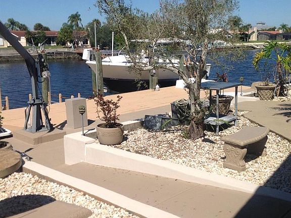 90 ft Waterfront property with 48Ft. floating dock and a 24,000lb boat lift and davits. 5 minutes from the open Gulf of Mexico. Circular driveway for easy access plus additional side driveway for RV/Boat parking. Outdoor screened-in living area w/large inground pool. The community offers private beach and boat ramps for its members.