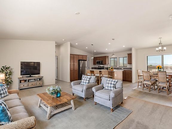 Brand new, 2025-built home on 2 acres with a shared well and mountain views. The 1600sf ''Willow'' floorplan features 3 bedrooms and 2 full baths, a large great room, vaulted ceilings, and a split master bedroom. Gorgeous kitchen with hardwood cabinets, stainless appliances, granite-look counters, and a center island with breakfast bar lit by pendant lighting. And don't miss the HUGE walk-in pantry disguised as just another cabinet. The home also includes energy-efficient features such as Low-E vinyl windows and R-40 roof insulation. On the exterior you'll find a concrete porch and also a patio, easily accessible from the sliding glass doors. Pipe fencing lines 2 sides of the lot, and the well is over 800 feet deep. No 4 wheel access needed--paved roads 100% of the way to the property