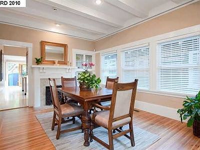 Located on a quiet, residential street 5 minute walk to Chabot Elementary and all the restaurants and shops in Rockridge, Temescal, and Rockridge BART. Short drive to 24 for commuting to SF, or 5 minute walk to Rockridge BART, casual-carpool pickup spots or transbay buses. The main floor has gorgeous hardwood floors throughout. Living room has large windows, great natural light, and an electric fireplace. Formal dining room opens to an updated kitchen with stainless steel appliances and large breakfast nook. The charming full bath with shower over tub is delightfully detailed with accent tiles and and window. 2 bedrooms both have windows on 2+ walls and the master has a ceiling fan and its own private half bathroom as well as opens onto a secluded feeling rear deck overlooking the yard . In the backyard, there is a finished studio house perfect for a home office, gym or additional storage. Both the front and back yards are recently landscaped with mature trees, underground irrigation and lighting in the night time. Included in rent is a gardener who visits once a month. Home features: Remodeled eat-in kitchen Updated One and Half bath Finished detached studio/home-office space in back yard Beautifully refinished Oak floors Box beam ceilings Original craftsman built-ins Electric fireplace New interior paint New recessed lighting Sun-soaked private feeling deck off the kitchen and master bedroom Wonderful yard with new landscaping, irrigation and 1/mo. Visiting gardener Small basement for additional storage 90 Walk Score Available October 15h First months rent and 1.5 months rent security deposit required upon move-in Pets considered case by case basis with additional $100/mo.
