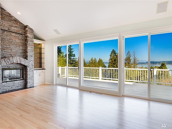 Absolutely magnificent view! As you enter the home you can not miss the bay, Blaine and mountain ranges - they literally pull you into this bright home. Living in luxury is here, spacious master suite, two additional ensuite bedrooms (guests?), a large office, remodeled kitchen, laundry and dog wash all on main floor! Downstairs has office, huge living room and a very open floor plan. Home features mature landscaping, view, air conditioning, huge deck and a large 2 car garage with B/I storage.