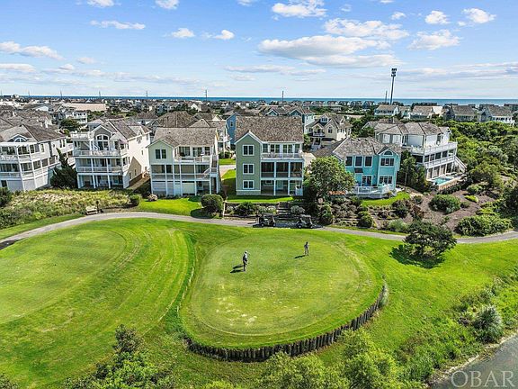 Breathtaking Sound & Golf Course View*Watch the Golfers Tee off at #11* Experience unparalled luxury living with exquisite 5 BR, 5.5 BA residence Never used as a rental* Elevator* As you step inside, the grandeur of the great room featuring valulted ceilings, gas fireplace and a panorama of the 11th tee. The MBR is a haven of tranquility with walk in closet & a luxurious ensuite bath. Chef's kitchen offering a delightful blend of functionally & style complete with an eat-in dining area & convenvenient bar. Middle level is designed for comfort with 3 in-suites & a morning kitchen with Refrigerator & Dishwasher for convenience for Guests & Family* Lower Level is a haven for entertainment with Game Room/ In Law Suite with Wet Bar has new carpet, BR & Full Bath* Leads to Patio. Garden & Outside Shower. Village at Nags Head Community has an Ocean Beach Club Huge pool & kiddie pool, Ocean access & Restaurant. Memberships available. Links Golf Club interwines through the community. Memberships available. Two Soundside Piers for fishing, crabbing, Kayaking & Beautiful Sunsets.