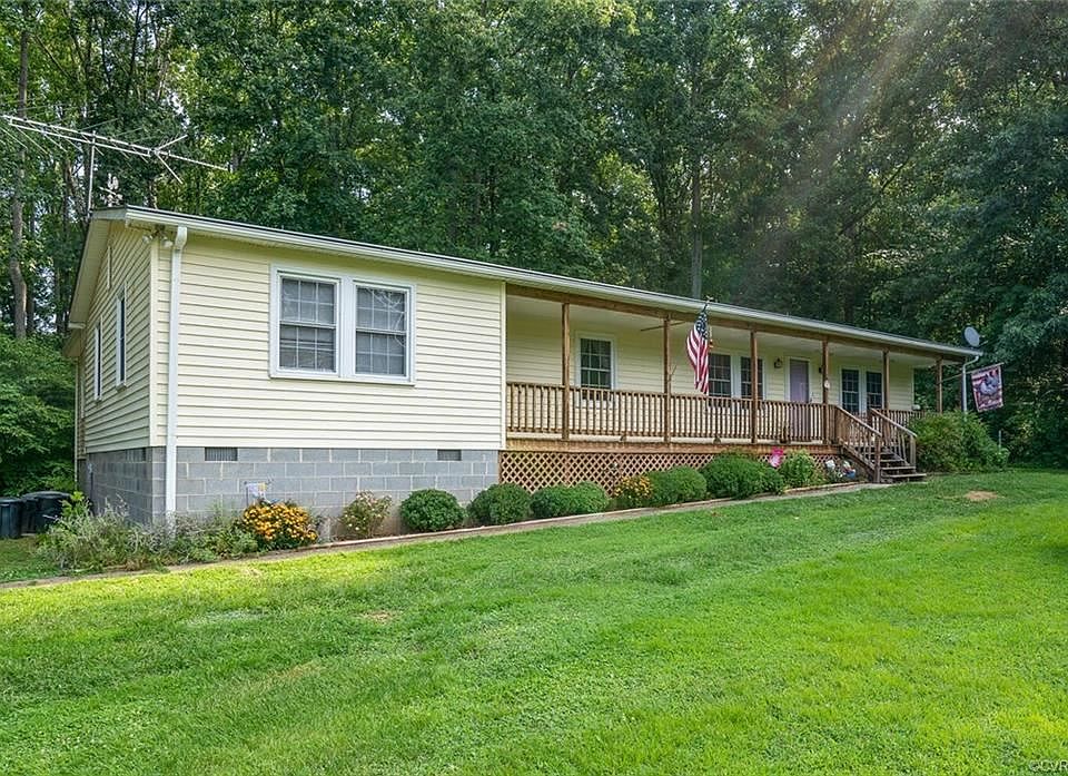 One level living on over three acres surrounded by trees. HUGE living room with windows for natural light. Kitchen with gas stove has plenty of cabinet space and a pantry. Dishwasher is less than two years old. Large dining area off the kitchen. Off the dining room was a screen porch that has since been enclosed with a wood stove for year round living space, perfect for an additional rec room! Just down the hall are three fantastic sized bedrooms plus an additional fourth bedroom (NTC) or office space and two full baths. Just around the corner is the most amazing cozy, cabin-like, huge, family room addition with another wood stove. Plenty of storage in the stand up crawl space. Tucked near the trees in the backyard is a chicken coop with electricity to keep the young ones warm. Don't worry about all the leaves from the wooded backyard...all gutters were fitted with Gutter Helmet guards in 2020. Grab a few rocking chairs and enjoy the covered full country front porch (246 sq ft) that overlooks the large front yard with blackberry bushes and room for a garden. Tons of living space and land for this price and only 35 minutes from Short Pump, so you better be quick!