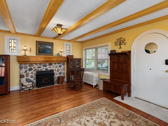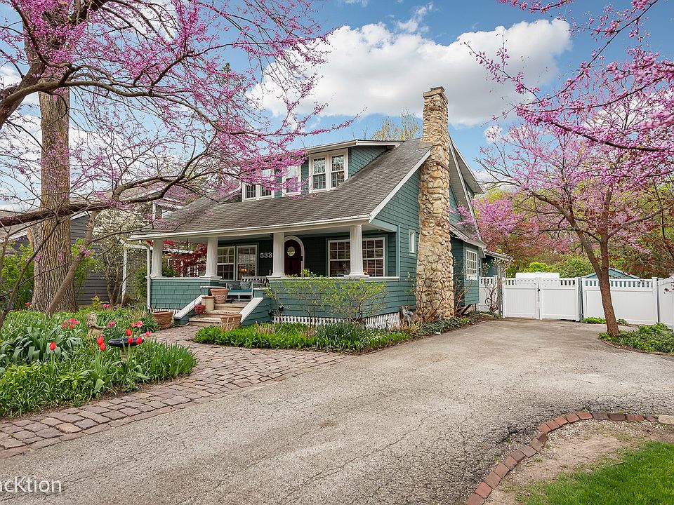 Embrace this captivating American Craftsman Home, a piece of history since its construction in 1916! Nestled in the sought-after North side of Downers Grove, this property is a beacon of charm and allure. As you approach, the inviting exterior sets the stage for the architectural delights that await within. Step through the arched doorways and behold a realm of timeless elegance, with exquisite hardwood floors underfoot and the ethereal glow of stained-glass features adding a touch of artistic splendor. The kitchen has been meticulously renovated to perfection with soft-close white cabinetry that harmonizes with the warmth of natural light streaming in. The kitchen seamlessly flows into a delightful family room adorned with built-ins and a cozy window seat, offering picturesque views of the expansive backyard. On the main level, a versatile den awaits featuring a built-in twin bed. The home has an incredible amount of storage, ensuring that every corner of this abode is both functional and stylish. Upstairs, discover three bedrooms and two fully renovated bathrooms, including the primary ensuite. Step outside into your own private oasis. The sprawling backyard invites you to indulge in leisurely pursuits and bask in the tranquility of nature. With its unique character, inviting ambiance, and rich history, this timeless masterpiece offers a story of elegance, warmth, and comfort that beckons you to make it your own.