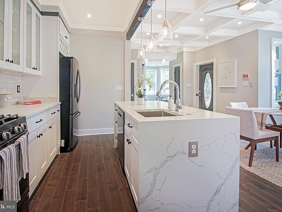 This is one renovation you must see. Featuring 4 bedrooms, 3.5 baths. Grand entrance steps make you feel like entering a masterpiece. Masterful tray ceiling and custom molding throughout give it that extra touch along artistically selected paint scheme. Gorgeous gourmet kitchen with huge beautiful white marble center island. Kitchen includes black stainless appliances, granite countertops, pot filler, custom backsplash, upgraded microwave oven. Bonus deck off the kitchen to enjoy your morning coffee or tea! ... Cozy living room with beautiful exposed brick accent wall, gorgeous hardwood flooring on main level. Modern amenities like Nest thermostat, upgraded alarm system, LED features, USB outlet in bathroom, and the ability to play your favorite tunes throughout the house. New top of the line washer / dryer. Lower level has its own entrance and can be used as separate living quarters. This is a MUST SEE ,