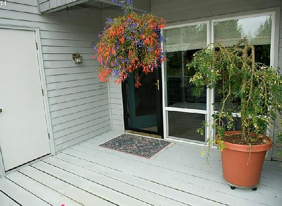 Amazing location, on cul-de-sac w/private deck w/golf course view! Finished attached garage has opener & built-in shelving & floor space of some double garages. Btfly maintained, updated, immaculate! Exposed beam tongue & groove ceilings. New porcelain kitchen tile flooring, recent appliances, new vinyl thermopane windows. MBR has private bath and slider to private deck. Refrigerator, washer & dryer included.