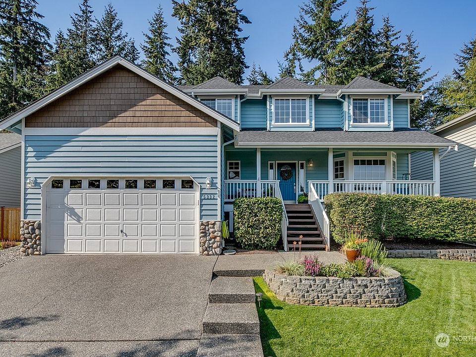 Fantastic two-story home with large covered porch off of Mukilteo Blvd. Built in 2000, this beautifully updated house offers over 2400 square feet and is situated on a greenbelt lot. The large deck, backyard, and entire landscape have been completely redone and provide a perfect setting for entertaining. The interior impresses with a gorgeous kitchen, hardwood floors, newer stainless steel appliances, granite countertops, and family room with skylights and gas fireplace. Four bedrooms upstairs, including spacious primary with five-piece bathroom. Located between old-town Mukilteo and downtown Everett, this home has great access to several amenities. New roof and cordless blinds. Mukilteo schools, gas heat, and two-car attached garage.