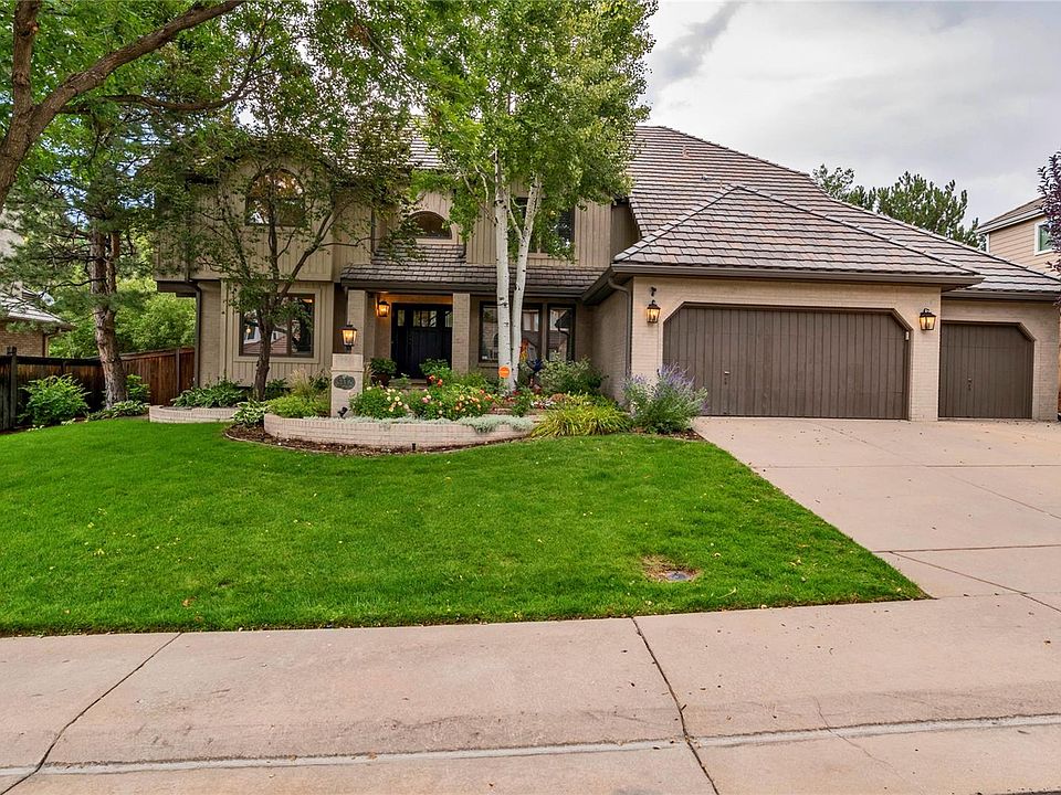One of the best locations in the Denver Tech Center a block away from the Cherry Creek State park and close to the Cherry Creek K-12 Schools. This beautiful semi-custom Hills West home is a rare find with 5 bedrooms, 5 bathrooms and major designer upgrades to the kitchen, great room and a completely renovated master bath (Over $150K in custom upgrades). The main floor has a dramatic 2 story family room with fireplace, a formal dinning & living rooms plus a grand study. There is 3 car oversized garage off the large mud/laundry room. The garden level basement is 3 years old with an additional family room, exercise space a wonderful guest suite and large storage room. The outdoor living space is a half covered flagstone patio with plenty of room to entertain. The entire yard has beautiful landscaping enhancing the warm inviting feel of this home. Driving through the rest of the neighborhood will reinforce what a great opportunity this is.