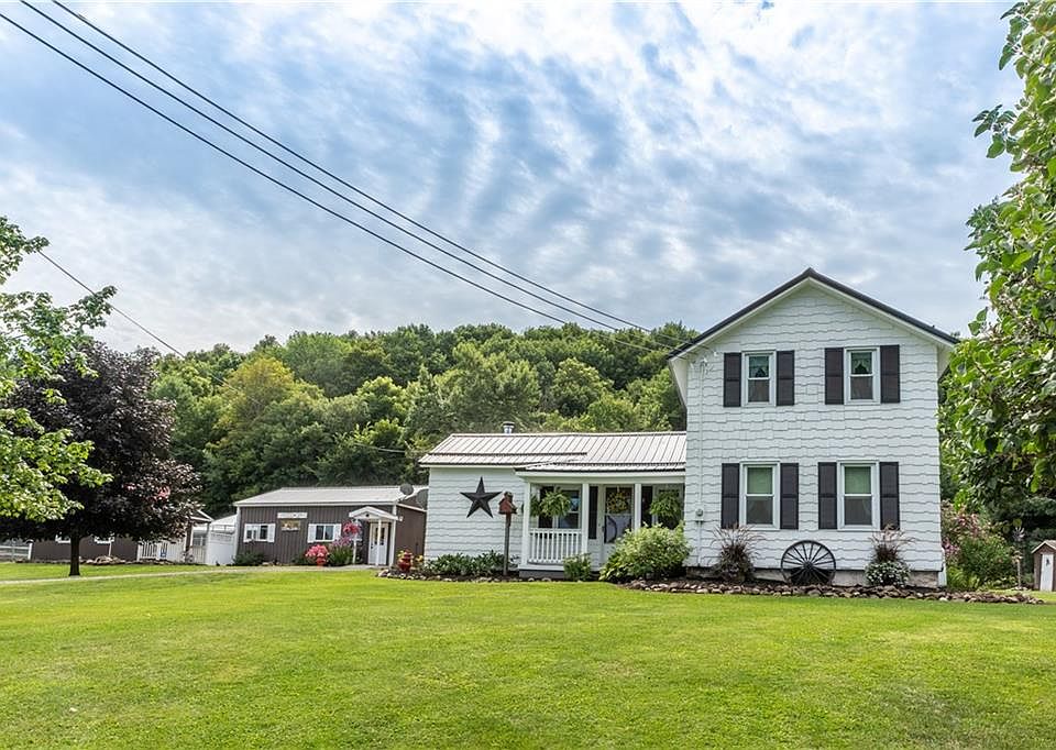 BEAUTIFUL COUNTRY LIVING!!! This NEWLY UPDATED COLONIAL has PLENTY of Room to Roam, On it's 3.89 Acres!!!! Brand NEW boiler system, NEW windows, NEW METAL roof, NEW flooring in downstairs , fresh paint, NEW outdoor riding arena and the list goes on! Multiple outbuildings include 30'X60' Pole Barn/Garage w/10' porch, 30'X40' and 30'X20' all with electric, heat and water!!! Currently being used as an in home business but could be used as an in-law option also. The possibilities with this spectacular property are ENDLESS