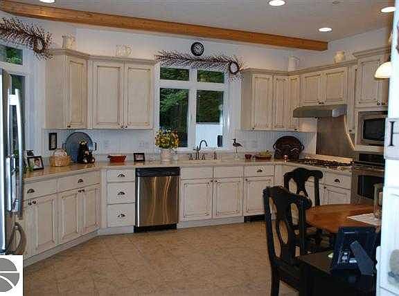 Scenic setting for this custom waterfront home w/100 ft private frontage on Little Platte Lake. Sit deckside to listen to loons and watch eagles. Inside features a kitchen for cooks. Great room w/wood floors, vaulted ceilings & stone surround gas fireplace. Master suite w/lake view, his and hers custom bathrooms. 3 car insulated/heated garage w/extra sleeping room or office. Outside fireplace, whole house generator. Great spot for fishing, swimming, boating. Additional lot w/30x40 pole barn for $60,000. Near Lake Michigan, parks, beaches and Sleeping Bear Dunes National Lakeshore park. Close to golf and skiing at Crystal Mtn.