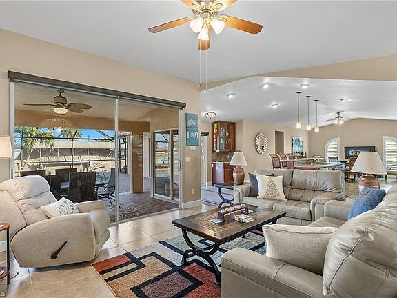 Welcome to the coveted Yacht Club neighborhood of SE Cape Coral where it all began. This meticulously maintained 4-bedroom, 3-bathroom waterfront home offers expedient direct gulf access and delivers the perfect blend of location, comfort, modern amenities, and is being sold furnished. Built in 1994 and spanning nearly 2,400 square feet, this furnished residence is your gateway to the Florida lifestyle. The property features a stunning pool and spa system with iAqualink integration, allowing remote control from your mobile device – perfect for warming up the spa after a day on the water. Boating enthusiasts will appreciate the 12,000lb boat lift and composite dock with quick gulf access for your 35ft boat. Recent upgrades showcase the owner's attention to detail: new HVAC (2024), new water heater (2024), pool pump and heater (2022), plus recently installed impact windows and rolldown hurricane shutters. Notably, this home has no history of water intrusion. Inside, you'll find quality materials throughout, including granite countertops, tile floors, custom window shutters, and sleek stainless steel appliances. Modern conveniences include Ring cameras, wet bar, and a 4-zone irrigation system. The location couldn't be better – near the heart of downtown Cape Coral's popular dining and entertainment destinations, yet perfectly positioned for quiet family evenings at home. The area is primed for growth with multiple developments underway, including the highly anticipated Cape Coral Yacht Club redeveloment project. This move-in ready property offers the perfect blend of coastal living and modern comfort. Come experience the best of the Yacht Club area in this thoughtfully updated home. Canopy boat cover and canopy cover hardware does not convey.