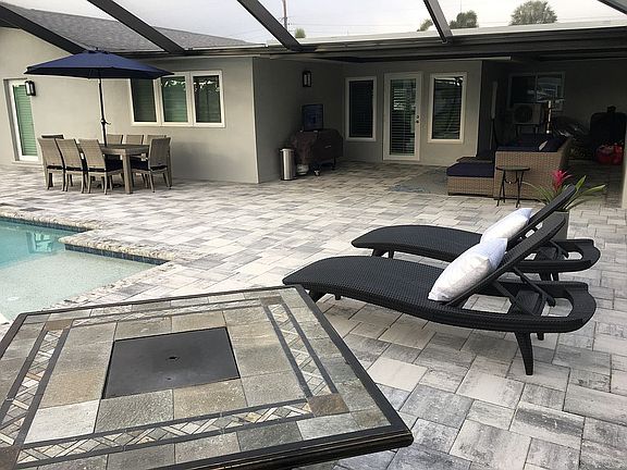 Immaculate updated modern home in the Yacht Club area with some of the best boating access that the Cape has to offer, at only 5 minutes to the River!!! Attention to detail in the fabulous renovation of this 3 bedroom, 2 1/2 bath home will WOW you! The open great room gives a spacious feel as soon as you enter the front door. The newly remodeled kitchen features REAL WOOD cabinetry, beautiful granite counters, updated sensor faucet, tiled back splash, and pendant accent lighting. Tile in the main living areas, new flooring in the bedrooms including carpet in he master. Other updates include, plumbing (2008); AC (2009) and irrigation (2013), amazing pool, lanai with privacy wall, with a hue sundeck in grey, elegant spa and cage (2018), electrical (2018), new interior ceiling and wall texture (2018), paint (2018), master remodel with ship lap ceiling (2018), landscaping, dock and lift (2020) and more.