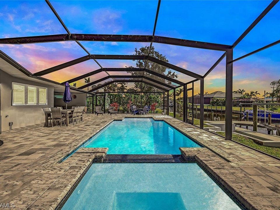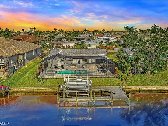 UNIQUE OPPORTUNITY FEATURES DIRECT SAILBOAT ACCESS 5 MINUTES FROM THE CALOOSAHATCHEE RIVER AND THE GULF OF MEXICO LOCATED IN THE EXCLUSIVE YACHT CLUB NEIGHBORHOOD. As soon as you pull into the circle drive you are greeted by this inviting open floor plan and you'll know this is the right place to call home! You'll enjoy this resort-style living with this beautiful, fabulously, updated split floor plan with 3 bedrooms, and 2 1/2 baths featuring the open great room giving you a spacious feel. Many updates with solid wood cabinetry, beautiful granite, sensor faucet, tiled backsplash, and pendant lighting. Once outside, you'll appreciate the elegant heated saltwater spa (2018) flowing into the pool you always dreamed of owning featuring a relaxing sun ledge, lanai, and specious paver pool deck. Boaters will enjoy this 10,000# boat lift (2020) with a composite captain's walk. Many other updates including the owner's suite remodel with a shiplap ceiling that walks out to the pool area. This home was properly remediated after the hurricane with all cabinetry, counters, and appliances saved! Just needs the lower walls and some flooring replaced and the cabinetry reinstalled!!! This is one of the most desirable areas in Cape Coral. Come see this piece of paradise today and start living the Florida Dream!
