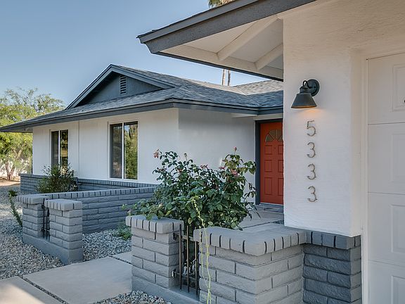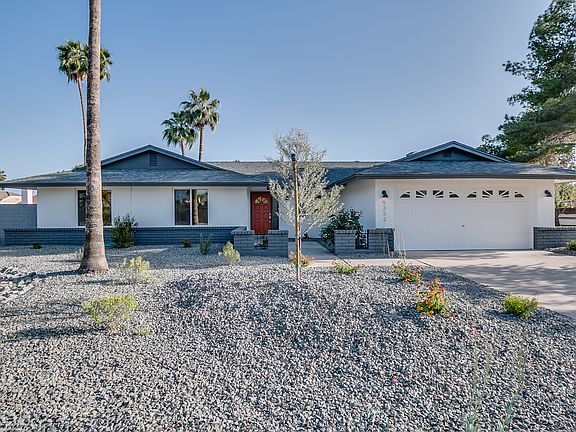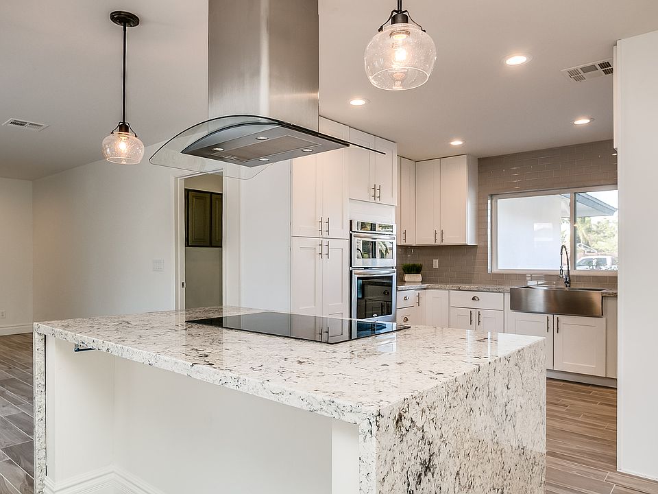 Total remodel top to bottom with top of the line finishes. All new Kitchen Aid appliances dual oven/ microwave combo, farmhouse sink, subway tile backsplash, huge chefs kitchen island with cascading granite counter tops. AZ tile wood tile floors, fresh paint inside and out. Elegantly remodeled bathrooms, new lighting fixtures throughout. Hardwood floors in three spacious bedrooms. Home has new dual pane windows, updated HVAC and duct work through out, new landscaping and drip system, epoxy garage, roof redone 2014. This is not your average flip.