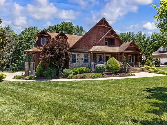 Welcome to your dream home! A truly one-of-a-kind custom-built masterpiece that perfectly blends luxury, comfort, and natural beauty in one perfect package! Spanning over 4,000 square feet, this exquisite residence offers a unique living experience with meticulous attention to detail and high-end finishes throughout. This spacious home includes a primary suite with custom-built cabinets and drawers in the walk-in closet, an extra-large walk-in shower, and a separate tub for ultimate relaxation. An additional bedroom on the first floor boasts an ensuite full bath, ensuring privacy and comfort for your guests or family members. The open-concept living area seamlessly connects the family room, kitchen and eating area, providing a perfect flow for entertaining. A large office offers a dedicated space for productivity, while the built-in mudroom bench off the expansive 3-car side load garage keeps your home organized. The extra-large laundry room adds convenience to your daily routine. Large windows offer breathtaking views of the tree-lined, fenced-in 1-acre lot, featuring professionally maintained, mature landscaping. The second floor includes two bonus rooms, ideal for a home gym, playroom, or additional office space. Each of the upstairs bedrooms features a private balcony, providing lovely spots to enjoy morning coffee or evening sunsets in solitude. The new exterior deck and freshly stained exterior enhance the home's stunning curb appeal. This home features a whole-home generator, a built-in safe under the stairs, and a central vacuum system, ensuring peace of mind and ease of living. For added convenience, a grocery door from the garage leads directly into the walk-in pantry, making unloading groceries a breeze. Family and guests can gather on the wide and welcoming front porch, perfect for sipping tea or coffee and enjoying the tranquil neighborhood. Finally, step onto the massive screened-in deck from the living area, kitchen eating area, or primary suite. Cozy up to the full-size, floor-to-ceiling stone fireplace and enjoy the serene surroundings. Don't miss the opportunity to own this spectacular home in the gorgeous Georgiana Estates with NO HOA!
