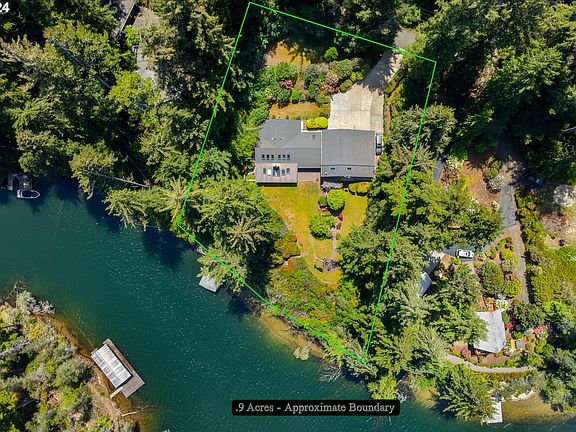 Breathtaking Woahink lake views from this beautifully made and well cared for home. This 2-story, custom built home is full of high quality finishes and upgraded features that would be coveted by any potential buyer. The top floor serves as a primary suite, with an oversized bedroom that is attached to a bathroom, study, and an exterior accessible sun porch. The living room is lit up by 6 large skylights and can be made even more cozy by starting a fire in the brick fireplace. A large sunroom that faces the lake is the perfect place to take in the expansive views of the lake, while keeping out of the elements. When the weather permits, take a walk down to your boathouse/dock and enjoy the activities that Woahink lake has to offer.