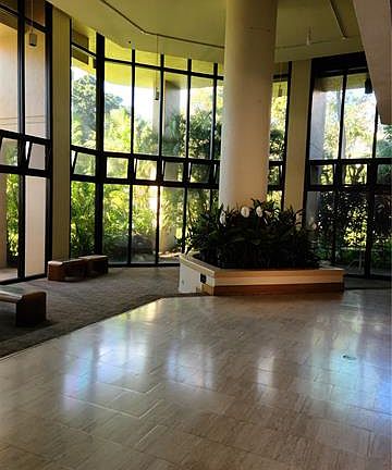 Great for first time homebuyer or investor, reasonable maintenance fees. Needs TLC, but priced accordingly. No repairs. Desirable, secured, gated complex, beautifully landscaped grounds, golf course view, and of the three types of studios in the Plaza Landmark, this is the largest model in square footage, washer/dryer in unit, community laundry also available, full size storage space located on same floor. Close to airport, Salt Lake Shopping Center, 10-15 min eastbound to downtown Honolulu or westbound to Aiea area. Amenities include sauna, jacuzzi, exercise room, walking path with Koi pond, and resident manager.