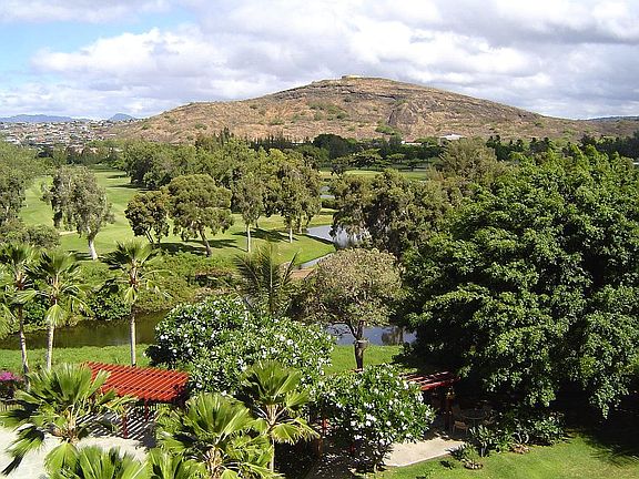 One bedroom (626 sf living, 80 sf lanai) with golf course view & full amenities. Bedroom with walk-in closet. AC & ceiling fans in living & bedrooms. Covered parking stall & outside storage unit. Pool, fitness center, BBQ area, community party room. Onsite resident manager. Secured parking & building entry. Adjacent to public parking lot. Within a mile of Salt Lake Shopping Center, Salt Lake Library, Salt Lake Park, & Ala Puumalu Park. Close to airport. Appliances included: washer/dryer in unit, refrigerator, range/oven, microwave oven, garbage disposal, AC, ceiling fans. Utilities included: water, sewer, trash pick-up, basic TV and wi-fi. Furniture not included. Available Jan 1, 2022. Showings available Dec 18, 2021. Maximum 2 people at a time. Face masks required. $1,850/mo. One-year rental term. One month's rent and security deposit ($1,850) required before move in. One-time condo registration fee of $100. No smoking/pets.