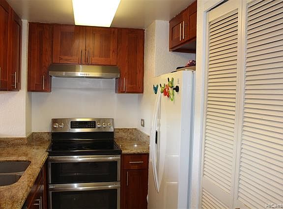 $30,000 Price Reduction! Rarely available 2/2 with balcony in perfect move in condition. Secure parking large storage. 2nd stall available. One of the most beautiful and elegant condos on Oahu. Sunny landscapes and amazing views like a luxury resort. Remodeled in 2020 with $40,000 in upgrades - new luxury Cherry wood cabinets, Granite counter tops, tile flooring, laminate wood flooring, luxury paint, curtains and new screens. All new appliances and A/C. Stunning Golf Course, Lake, Pool and Mountain Views which can be enjoyed from the unit or sitting out on lanai. Secured complex with terrific amenities - gym, hot sauna, Pool, Jacuzzi, two separate BBQ areas and party room and guest parking. Walking paths very quiet and peaceful. Pets Allowed, bldg extremely well managed and maintained.