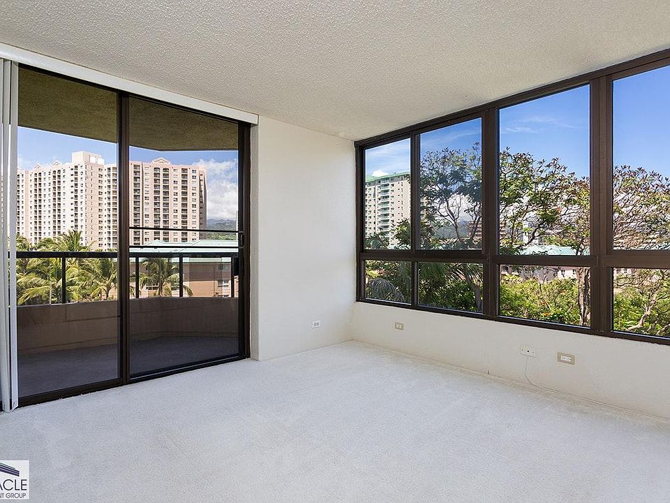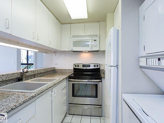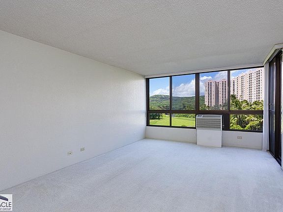 Spacious 2 bdr / 1 bth condo in the desirable Plaza Landmark. Great layout with a spacious lanai perfect for relaxing and enjoying the golf course views. Includes AC and washer/dryer inside the unit. Secured bldg with covered parking. This complex feels like a resort in the heart of Honolulu. Amenities include a pool, BBQ area, workout room. Minutes from Ft. Shafter, Hickam, Airport, Pearl Harbor, Pearlridge, and shopping. A must see! 1 year lease. Water and sewer included. No pets.