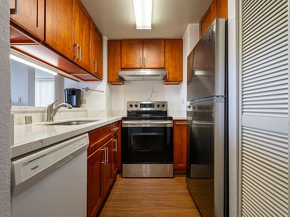 This two bedroom, two bathroom unit was vinyl floors throughout and newer kitchen appliances, in the secured Plaza Landmark condo in Salt Lake. The unit comes with several furnishings such as: TV, sofa, beds, tables, chairs, desk, small kitchen appliances, towels, etc. A covered patio overlooks Honolulu Country Club. Plaza Landmark is conveniently located near freeway on ramps, Longs, Target, and other shops and places to eat. One parking stall for this unit with several guest stalls on property. Renters insurance is required upon move in and through duration of tenancy. All applicants are subject to physical inspection of the property and application fee. No pets and no smoking. Renters insurance is required upon move in and through duration of tenancy. All applicants are subject to physical inspection of the property and application fee. No pets and no smoking.
