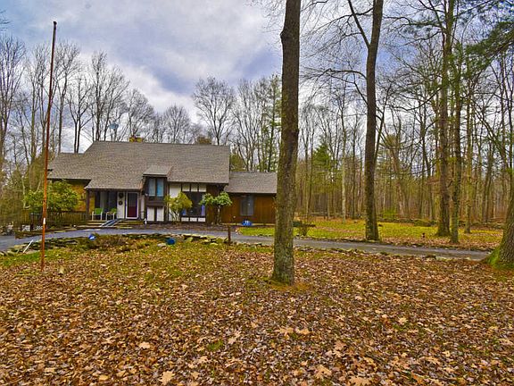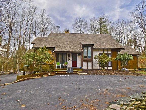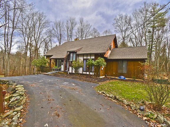 PRIVATE 3bd/3ba Mountain Home on OVER 2 acres. Relax in the BRIGHT & SPACIOUS Living Room w/ cath ceilings & BIRCK FIREPLACE that warms up the whole space. Flowing right into the LARGE UPDATED Eat-in Kitchen w/ PLENTY of cabinets, GRANITE breakfast bar w/ extra seating, STAINLESS STEEL APPLIANCES, DOUBLE WALL OVEN, & Dining Area w/ sliders to the ENCLOSED SUNROOM. Cozy Family Room perfect for extra living space. HUGE 1st floor Master Bedroom w/ DOUBLE WALK-IN CLOSET, deck access, & BRAND NEW Bath w/ LARGE glass front shower. 2nd floor features a full bath, 2 NICE size bedrooms, & Den that could be the 4th Bedrm. This home also has a FULL Lower Level w/ BAR & workshop area. 3 Car Garage. LARGE DECK. BRAND NEW ROOF. 2year old boiler. AND MUCH MORE! CALL TODAY to come see this LOVELY Home!