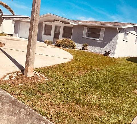 This property is located in a quiet location in New Port Richey, but close to all shops/ Restaurants with easy access to Pinellas County. 2 bed1 car garage with1/1/2 bathrooms. Freshly painted both inside and out. Newer Kitchen, with Refridgerator,stove and dishwasher, with Laundry hook up in garage. Tile adorns the living area with carpet in both bedrooms. The property has a thought-out design with a large bonus room. Partially fenced yard which could also easily be completely enclosed, (tenants' expense) plus a drive in /out circular drive. This property is exceptional and early viewing is strongly recommended! Tenant pays for utilities and Lawncare