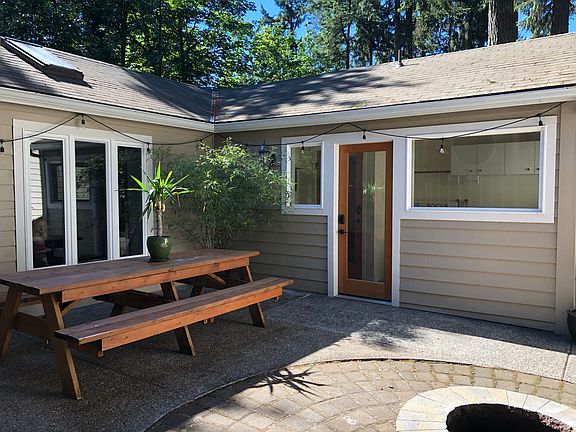 Farmhouse living with great front porch. Large lot, RV parking, 2 detached garages. Shop, in home office, state of the art chicken coop. Tremendous home for lots of gatherings, fire pit, patio, fenced and private. Charming, shabby chic. Lake easement