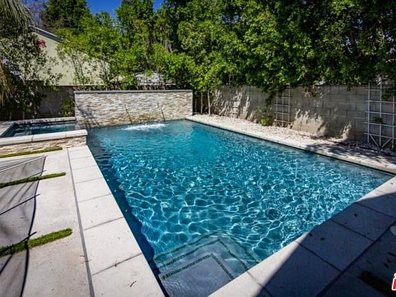 Private Valley Village Mini Estate, gated with a hedge for privacy...it has it all; Bright Spacious Rooms, Pool, Garden and a Guest House. This is a home you can live in, really live in with family and friends. Lots of space for you and your creative pursuits. Living room with working fireplace. Great remodeled kitchen with special fridge, Cesar stone counter tops and cute island with butcher block top. Large family room. Spacious Master Suite has soaring ceilings, wall of windows, sliding doors to the pool and spa, a wonderful custom bathroom and outfitted walk in closet. Front office/bedroom. Two additional bedrooms with en-suite baths. Wonderful closets and bathrooms. Laundry room with washer and dryer. The detached garage is now a Guest House with closet, bath and kitchen. Big outdoor dining area. Large gated pool with a spa and cool cascading water feature. Extra Storage. Security cameras. Pets considered. Great Neighborhood, Great Street, Great House! Annual - $6,200 Per Month