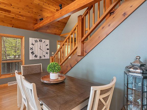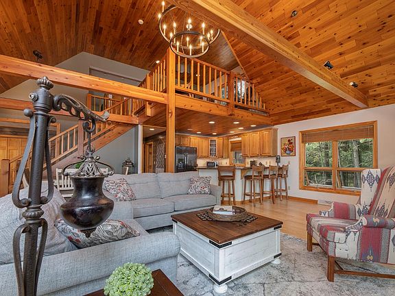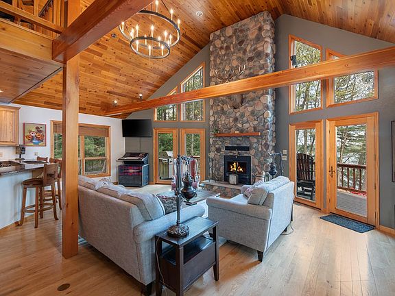 152' of Sand frontage on Dam Lake-Sugar Camp Chain. This 3 bedroom & 3.5 bathrooms is a must see. The main level features a kitchen with granite countertops, floor to ceiling fieldstone wood burning fireplace, expansive beams with a gorgeous tongue and groove ceiling. The main level offers a master suite, walk-in closet, bathroom with jetted tub, and tiled shower. Upstairs you'll find two large bedrooms, full bath, and open loft area overlooking the great room. The walk-out lower level is brand new and features a family room with fireplace, wet bar, full bathroom, office and also has a new furnace, WI-FI and house alarm. To finish off the package there is a beautiful lakefront patio with firepit, attached 2-car garage, detached 1-car garage and blacktop driveway.