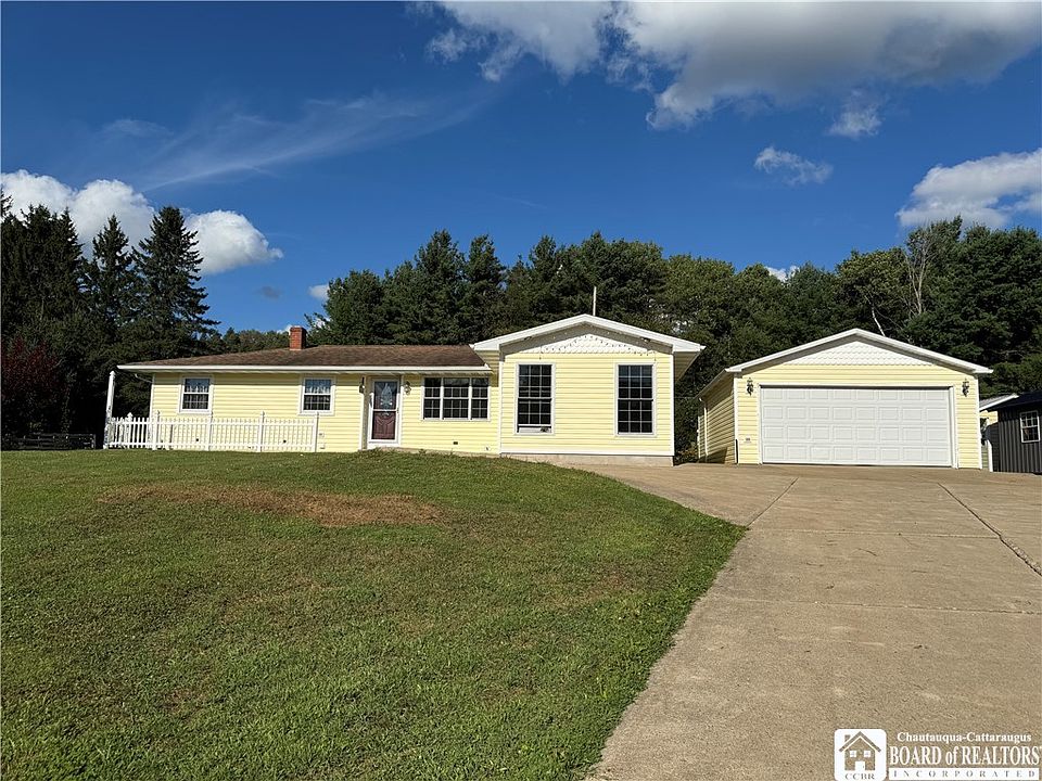 Move in ready 3 bedroom, 2 full bathroom ranch home that has been well cared for! This home sits on over an acre in the Town of Little Valley. The house has a generator for those occasional power outages, and newer windows throughout. Appliances stay along with an additional refrigerator and freezer! The finished basement includes a gas fireplace and a full bathroom! Just a 10 minute drive to Ellicottville or 10 minutes to the Seneca Allegany Casino! Serene setting off the back patio with beautiful landscaping and wildlife in the distance! Put this home on your "must see" list!