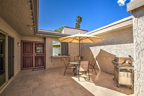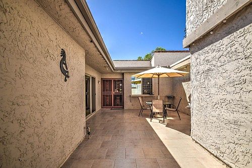 Beautifully updated and in an amazing Scottsdale location. Start with the private front courtyard, a perfect extension of your living space. Step through the front door and you'll immediately be drawn to this fantastic kitchen, which was completely remodeled(2016) with new cabinets and granite counter tops, and the ceiling raised. The wall between kitchen and dining was removed, creating a great room flow from the kitchen to the living room with high vaulted ceilings. Bedrooms are split, each with en-suite bathroom and private exit. Master features a spectacularly remodeled bathroom(2013) and dual closets. All sliding doors and most windows replaced with gassed, low-e, dual-pane windows(2015). This amazing home is an extremely rare find, come see it TODAY before it's sold..