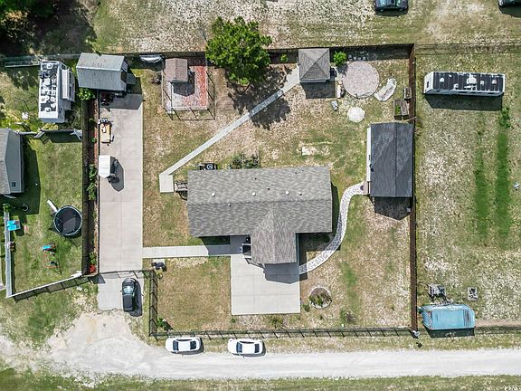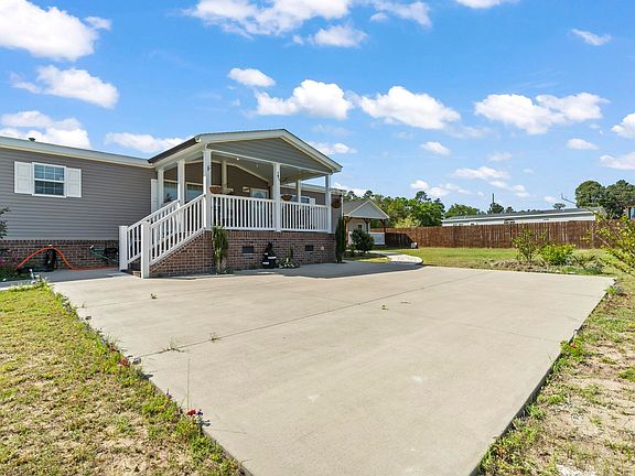 Welcome to this charming 3 bedroom, 2 bathroom home with a spacious 1680 sqft of living space. The main bathroom features a relaxing garden tub, perfect for unwinding after a long day. All bedrooms boast large closets for ample storage space. The separate laundry room includes a convenient sink for added functionality.  Outside, you'll find a 204 sqft open front porch, ideal for enjoying your morning coffee or evening sunsets. The property is well-maintained with brick underpinning and a privacy fence surrounding the large .62 acre lot. A detached storage building with electricity and a greenhouse with wood siding offer additional storage and gardening opportunities.  For guests or potential rental income, there is a cozy guest house with 1 bedroom, 1 bathroom, and an eat-in kitchen. This property is not located in a FEMA designated flood zone, providing peace of mind during storm season.  Conveniently located just a short drive to the beach, this home offers the perfect blend of privacy and proximity to amenities. With no HOA restrictions, you have the freedom to make this property your own. Don't miss out on this well-kept gem with plenty of space both inside and out.
