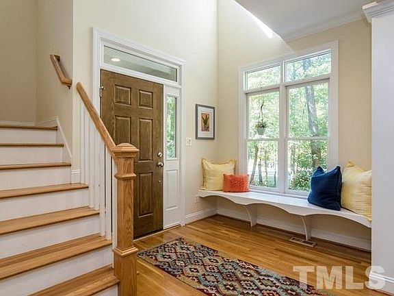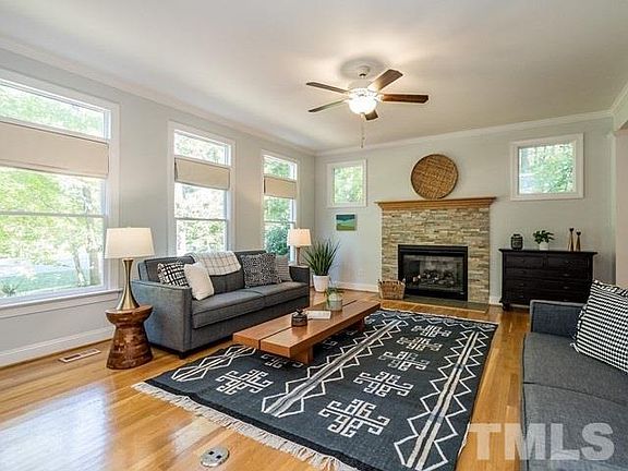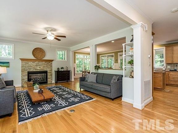 SIMPLE ELEGANCE- custom Gail Crabtree home weds Craftsman style & today's open, flowing floorplan. Leafy, level fenced 1 acre+ in peaceful N.Durham near the Eno. Spacious screen porch to decompress & enjoy nature. Quality construction w/ built-ins, elevated ceilings, windows galore, fiber cement, hardwoods on main. Open kitchen w/ ample counters & cabinets, gas range, stainless app. Nicely finished accessory bldg offers space for homeschool, art/yoga studio, office. 15 mins to Duke. Easley School Dist.