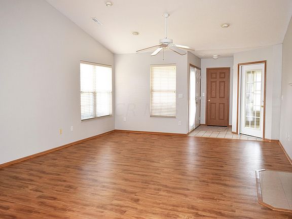 Located in The Ravines at Rocky Fork, this 2 story condo has 3 Bedrooms and 3 full Baths, 2 car-attached garage, and 3 Season Room. Spacious open Floor Plan has Great Room/Dining Space with gas fireplace, vinyl plank flooring, and cathedral ceiling. Kitchen is accessible from garage and Great Room with great cabinet space, white appliances, and washer/dryer hook up. First Floor Owner's Suite has vaulted ceiling, private bath with dual sinks and shower, and huge walk-in closet. 2nd Bedroom on main floor has large closet. Full Bath with tub/shower and large sink vanity. 3rd Bedroom on 2nd level with full bath, single sink vanity and shower. New Carpet. New Paint through-out. Enjoy the pool, fitness room, and clubhouse. Close proximity to grocery, restaurants, Easton, and airport.
