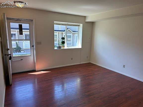 Welcome to your new home in beautiful Colorado Springs, & it is turn-key ready with fresh new paint, carpet, & all appliances included! This delightful townhome offers the perfect blend of comfort, style, & convenience located in close proximity to the Powers Corridor for ease of getting to shops, restaurants, & anything you might possibly need. Step into a bright and airy living area with a large front window that has a view of the front courtyard & lets in plenty of natural light. On cooler nights, grab a good book from the built-in bookshelves & get cozy next to the wood burning fireplace. Enjoy preparing meals in a kitchen that is open to the dining area, has ample cabinetry, spacious countertops & a balcony view. The townhome has 2 generously-sized bedrooms upstairs with plenty of closet space, in addition to a full bathroom & laundry room complete with shelving & Whirlpool washer & dryer that are included. Downstairs, you'll find easy access options from the garage or kitchen stairs to the basement that has 1 bedroom & 1 bath with a shower & vanity. If you need some extra storage space, the 1-car garage has that as well. This townhome offers a fantastic opportunity for anyone looking to embrace a low-maintenance lifestyle in a vibrant area. Don’t miss out on this gem – schedule a tour today and imagine yourself living in this charming Colorado Springs townhome! *Buyer to verify all square footage information, HOA info, metro district info, and zoning information.