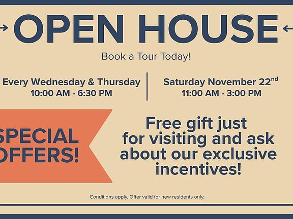 - Special offer! 1 Month Rent Free + $500 Security Deposit - Move in this month and you may qualify for our incentive.