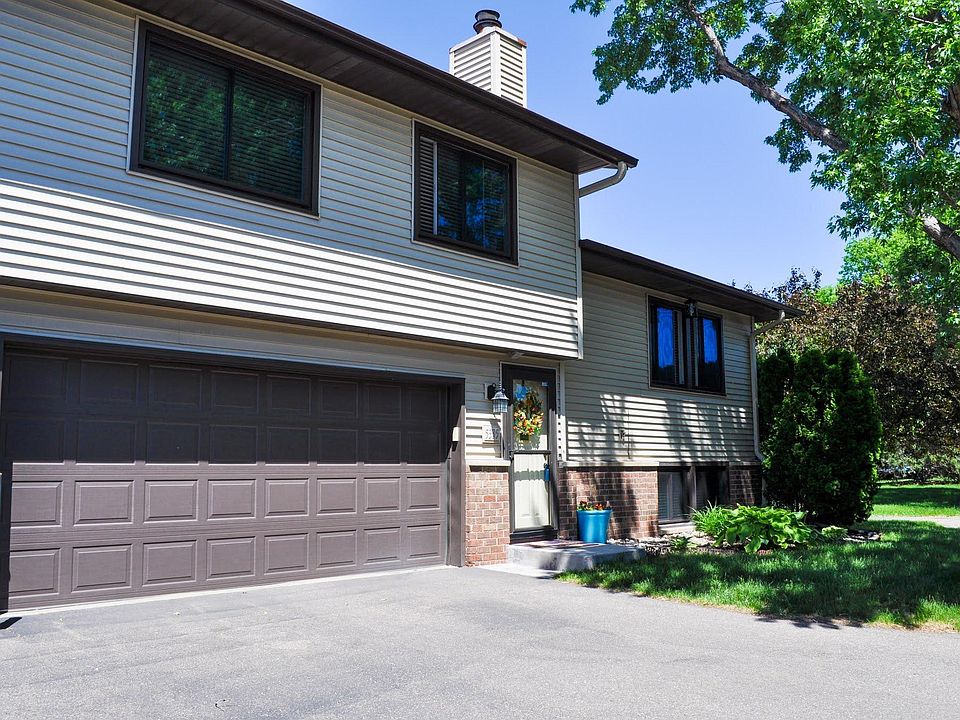 Pride of ownership shines! Delightful townhome located steps from Central Park (Executive 9 golf course, disc golf, playground, walking paths) and near shopping and Edinburgh championship golf course. Nicely updated with newer windows, roof, mechanicals and appliances. Attached double garage leads to spacious entry with closet. Sunny living room which opens to dining area and kitchen w/ newer appliances. There is a nice sized deck and mature shade trees. Upper level features two good sized bedrooms and two baths. The master bedroom has a huge walk-in closet and private half bath. Lower level features L shaped family room with recessed lighting, lookout windows and wood burning fireplace! Enjoy carefree living in this move-in ready townhome! You will be proud to call this home! This convenient location offers easy access to the community center, River Park and boat launch on the Mississippi to the East and Maple Gove's great shopping, dinning and entertainment to the west.