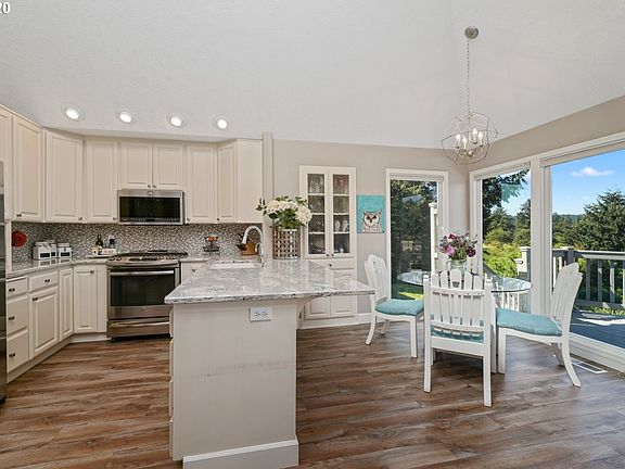 Incredible unobstructed views & sunsets! Privacy throughout, updated in 2017. Complete open concept w/ master on main. Cambria quartz,SS appliances, breakfast nook+formal dining. Floor to ceiling windows canvas entire back wall. Vaulted Master, WIC, dual vanity, soak tub & walk in shower w/double heads. Huge deck!. LL family Rm w/Gas FP, built-ins & more floor to ceiling windows. 2 LG bedrooms plus den/office & full bath. Fully fenced & landscaped. Huge patio on LL. Desirable Schirle/Cross/Sprag