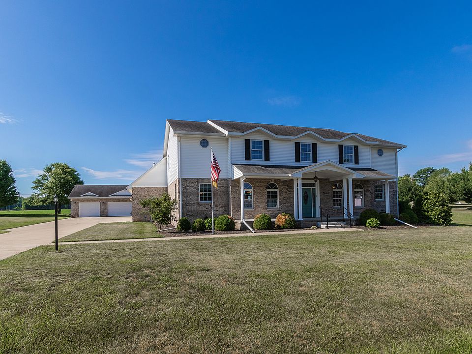 Beautiful 3 BR (possible 4 BR), 3 full BA home in sought after Sand Creek Farms. Large 0.90 Acre lot. Home features: Open living room/dining room with raised ceiling, fireplace & atrium door that opens to covered porch. Large kitchen with center island, all appliances and breakfast nook. Master suite on main floor walks out to covered porch, walk-in closet & private bath with double vanity, separate tub and shower. Den/Library on main could be used as a 4th BR. Large loft area with bar and family room area plus 2 bedrooms and large bonus room on upper level. 3 car attached & 4 car detached garages.