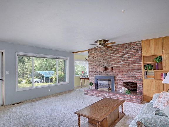 Beautiful 2 Bd w/ large bonus room/den, 2 bath, 1700 sf home on 1.75 acres with paved driveway. The home boasts large rooms for the era, many built-ins, bright & open eat-in kitchen, gas stove, water heater, & fireplace, updated vinyl windows, large laundry room with utility sink & new plumbing, pantry, spa in gazebo off master bd, & lots of outdoor storage for your toys. There is a 1 car detached garage/workshop w/ large unfinished loft/storage room, 1 car carport attached to the house, additional large metal carport for your boat & other toys, & 2 small gardening sheds. Large RV Parking can easily accommodate a diesel pusher style RV. Approx. 1 acre has a GPID gravity fed irrigation system with spigots & sprinklers, tiered garden beds, & gently sloped lawn. Per Seller there is River Access Deeded by Clark Gable!