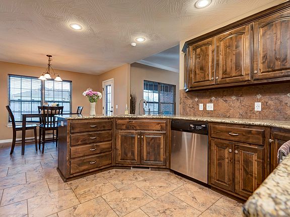 Elegant all brick, three car garage, four bedroom home on one level featuring a super functional floorplan. Formal dining room is set apart by a gentle arched architectural opening that is echoed in the custom kitchen cabinetry and cottage-style interior doors. Hardwoods, granite, corner gas fireplace, second dining area off kitchen, large windows overlooking the fenced back yard, and covered back patio are all wonderful features you don't want to miss! Master suite offers tall ceilings and large bath with corner jetted tub, walk-in shower, dual vanity and walk-in closet. The fourth bedroom offers double doors and would make a fantastic office or second living area if desired. Located in the fantastic southwest Springfield subdivision- Plainview Oaks. Built in 2011, this home feels new but has the benefit of an established neighborhood. Call today to see!