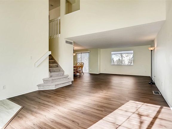 Great home with a little something for everyone in Saddle Rock Ridge. Located within walking distance of all three local Cherry Creek Schools, this large 4 bedroom home features an open floorplan with vaulted ceilings, kitchen island and a basement that is partially finished and still has a storage area. New designer flooring on main level and master bath. The home is situated on a wonderful lot with no neighbors in the front or back for excellent privacy and fantastic city and mountain views from the 2nd level. Located in a desirable area close to Southlands Mall and retail district and easy access to E-470. Welcome home to Saddle Rock Ridge!