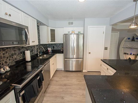 This beautiful 2 bedroom, 2 bath condo with 1 car garage in very sought after Coach Homes at Dover Village is a Must See! This MOVE IN READY ground floor corner unit has been completely renovated from top to bottom. Upon entering the community you will see the mature trees, guest parking, community pool as well as your very own driveway and garage. As you make your way into the condo you will see the lovely building lobby (COA newly remodeled) leading you to your condo unit. Once inside get ready to be "wowed" by the open and airy floor plan. From the large living and dining areas, custom colors inside to the double glass sliding doors leading to the screened and covered patio overlooking the large green space and lush landscaping this plan is sure to let in lots of light! As you continue the tour you will see the upgraded kitchen featuring eat in bar, slow close cabinets, lots of counter and cabinet space, built in wine fridge and all new Whirlpool stainless steel appliances. The kitchen opens to the dining room and living room making this the perfect layout for entertaining. Towards the back of the condo you will find the large master retreat, complete with walk in closet and a completely renovated master bath with walk in shower. New updates in 2017 include HVAC, water heater, laminate wood like flooring, carpet in bedrooms, kitchen cabinets, solid stone counters, remodeled bathrooms, plumbing re-piped May 2018, and much much more. This is the perfect condo for you! HURRY, this will go fast!