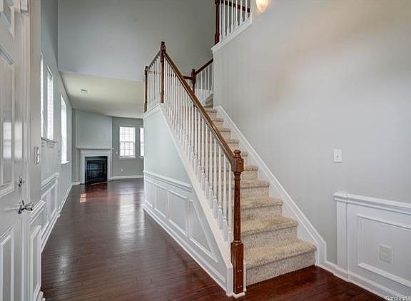 End Unit Townhome with fantastic Open floor plan through kitchen, family room & dining. Separate Den/Office on first floor. Granite, hardwoods, stainless steel appliances, fireplace. Large bedrooms. TWO walk in closets in master. Separate tub & shower in master bath. Second bedroom also has walk in closet. Laundry up. HOA maintains landscaping. Walk to n'hood pool. Convenient location - minutes to I-485, dining, new Whole Foods etc..