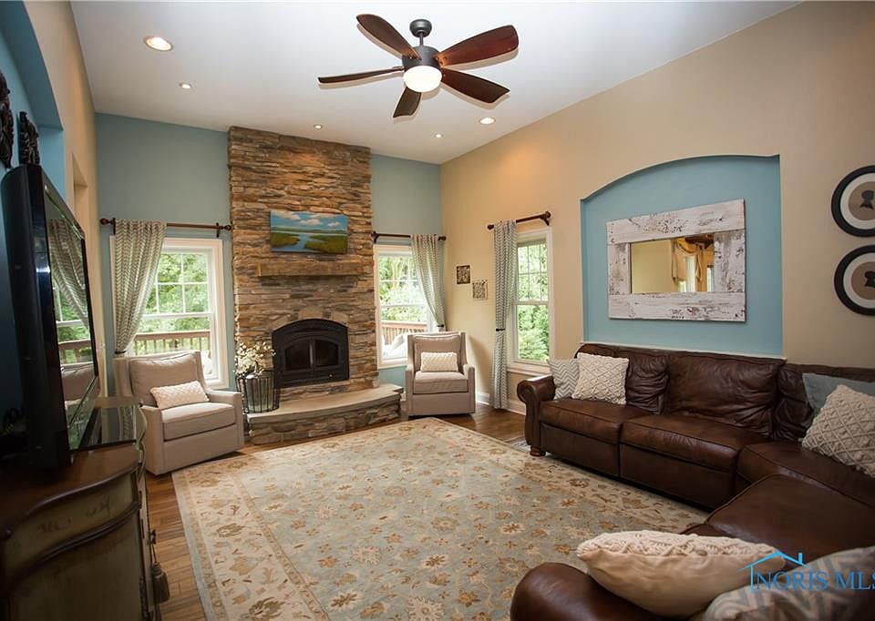 Newly finished walkout basement w/ home theatre & 10 ft ceilings. Renovated master bath in '17 w/ heated, imported Italian tile floor. Travertine tile in kitchen, walkout deck sits privately on 2.27 acres, mature trees & professionally landscaped lot. Walk-in closets, hardwood floors & lots of room for entertaining! Chefs dream kitchen w/ granite countertops & tiled backsplash. Possible 5 bdrms