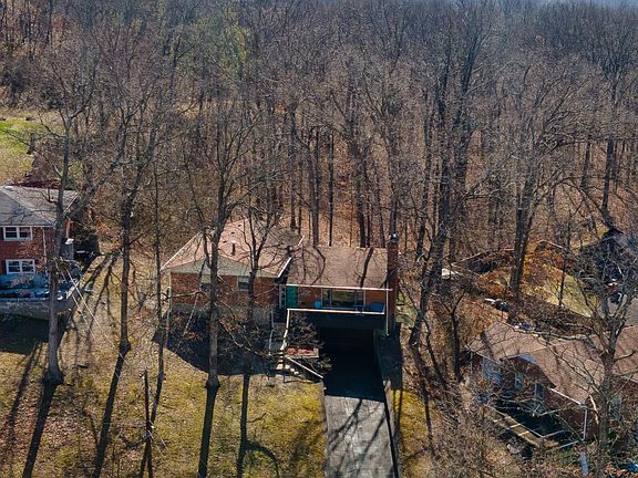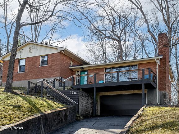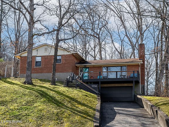 Have you been searching for the enthusiastically restored, well-loved and truly cared for Mid-Century Modern home of your dreams? This 1950's multi-level beauty sits high on a hill in the Iroquois View neighborhood, an area full of rich history. While positioned at the end of a cul-de-sac, the backyard remains heavily wooded, providing privacy and space for a nature-lover's serenity. You'll find authentic period-appropriate fixtures, features and details have remained or been reinstated throughout, as if scattered little gems. Natural light leaks through large windows and bounces off gleaming hardwood floors on both the main and upper levels. Enter through the gorgeous carved front door to the living room, where an elongated brick hearth sits beneath the fireplace, nestling two sets of built-in bookcases just begging you to cozy up. Follow around to the formal dining room, where the views from windows are almost entirely made up of trees. The kitchen takes you through a trip back in time, complete with picture-perfect pastel, genuinely retro, GE appliances in impeccable working condition. Eat in the kitchen or take your meals to the back deck, a great spot for entertaining or the occasional wildlife watching! At night, enjoy a magnificent view of the sparkling Louisville skyline from the large front deck, or through the spectacular picture window in the living room from the comfortable confines of your own couch! On the upper level you'll find three bedrooms and two full baths (one en suite). The full bath in the hall has been restored keeping the home's original era in mind, with porcelain sink and tiles, hand stamped wallpaper, authentic chrome fixtures, complete with a more modern jetted tub for spa-like soaking. On the lower level is a separate den, acting as a combined additional living room and study/office space with a full wall of built-in bookcases and a convenient half bath. The connecting garage is spacious, with room for two cars and a workshop area to tool around, should you wish. The lower-level utility room could be a pet lovers dream, with a window featuring a small removable cat door that leads to a fully enclosed exterior cat run and screened in 'catio'. The back yard has been partially fenced with two fully enclosed areas accessed by three convenient gates. Learn more by scheduling your visit to this fantastically unique property today! There's so much to love and further opportunity left to create here!