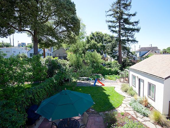 Beautiful Storybook-style home close to El Cerrito Del Norte BART and many shops and amenities. Great light throughout!- Formal dining room.- Living room with fireplace.- Large open kitchen with breakfast bar.- Hardwood floors.- Three bedrooms: 1 bedroom on main level, 2 bedrooms on second level.- Full bath on main level, half bath upstairs.- Large detached garage with workshop built with permits; ample off-street parking.- Private, level garden with fenced backyard, deck and patios.