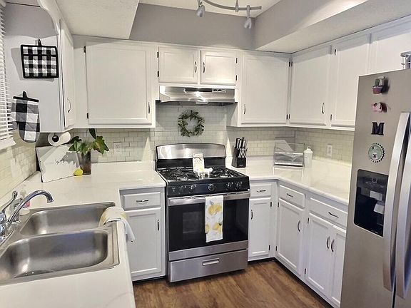 Updated condo w/3 finished levels. New furnace (2017), A/C (2018), H2O tank (2017), new windows & exterior doors (2020). Kitchen w/white cabinets, new SS gas range, side-by-side refrigerator & dishwasher (2021). Spacious dining area & sliding door opens to fenced patio w/installed turf & conveniently connected to the carport. Hardwood floors on the 1st floor w/newly updated half bath & wood-burning fireplace. New laminate flooring on 2nd floor & updated bath w/new subway tile tub surround & fixtures. Jack & Jill bath w/2 separate vanity areas connecting to tub/commode room. Huge owners suite w/vaulted ceiling, walk-in closet & private vanity area. Large 2nd bedroom w/tons of natural light. Finished lower level w/entertainment bar area, full bath & large storage room w/washer and dryer.