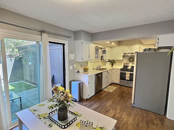 Updated condo with 3 finished levels that has a new furnace (2017), air conditioner (2018), hot water tank (2017) and new windows and exterior doors installed in October (2020) Kitchen with white cabinets, all new stainless-steel appliances- gas range, side-by-side refrigerator and dishwasher (2021) Has a spacious dining area and sliding door opening to a fenced patio with installed turf that is conveniently connected to the carport. Hardwood floors on the first floor with a newly updated half bath and a wood-burning fireplace. New laminate flooring on second floor and updated bath with new subway tile tub surround and fixtures. Jack and Jill bath has two separate vanity areas connecting to tub/commode room. Huge owner's bedroom with vaulted ceiling, walk-in closet and private vanity area. Large second bedroom with tons of natural light. Finished lower level with entertainment bar area, full bath and a large storage room with washer and dryer.